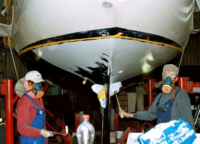Anschließend kamen sechs Schichten VC TAR abwechselt mit weißer und schwarzer Schicht auf das Gelcoat.