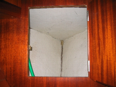 Blick in den original Ankerkasten. Ein mittlerer Anker konnte gerade verstaut werden.