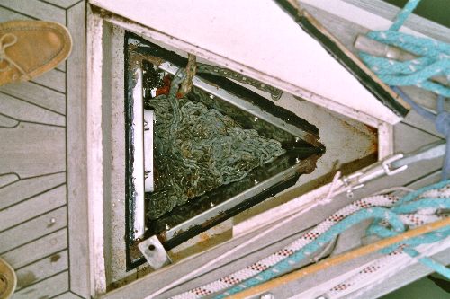 In den Ankerkasten wurde ein Kettenkasten mit Wasserablauf versenkt.