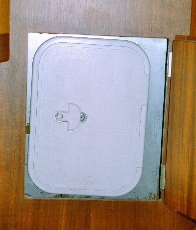 Der Ankerkastendeckel wurde halbiert. Die SB. Seite ist fixiert, über der BB. Klappe