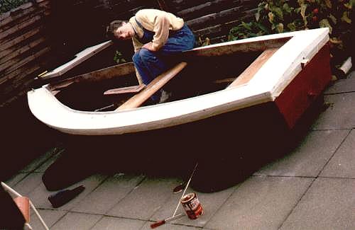 Meine Eltern wollten in dem morschen Boot, das nun erstmal im Garten lag,